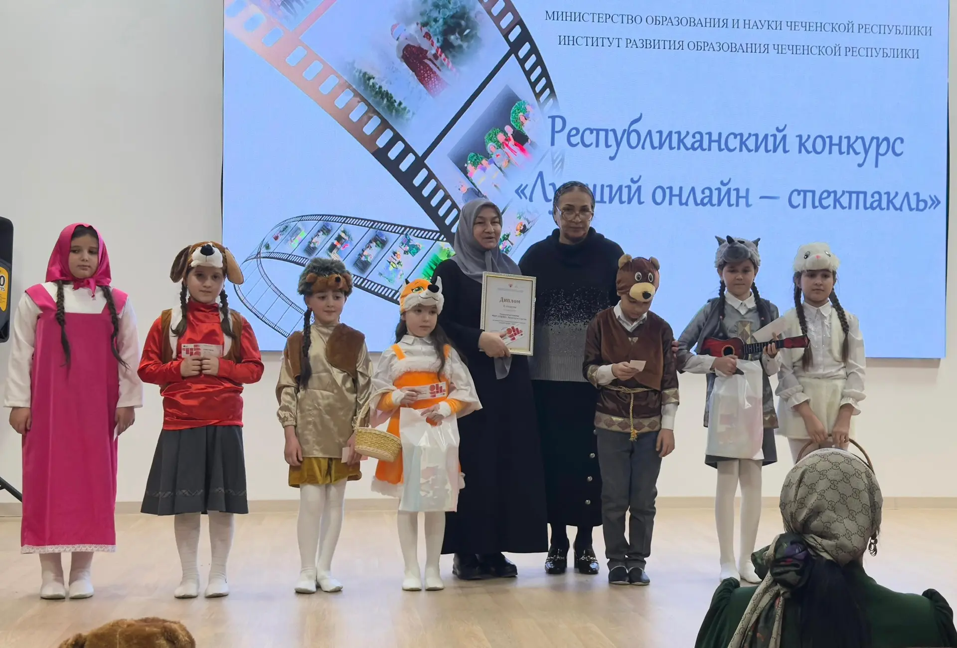 2024 г. Победитель в номинации "Лучшие костюмы" Городского конкурса среди школьных театров на лучшую постановку на чеченском языке "Сирла Седарчий".