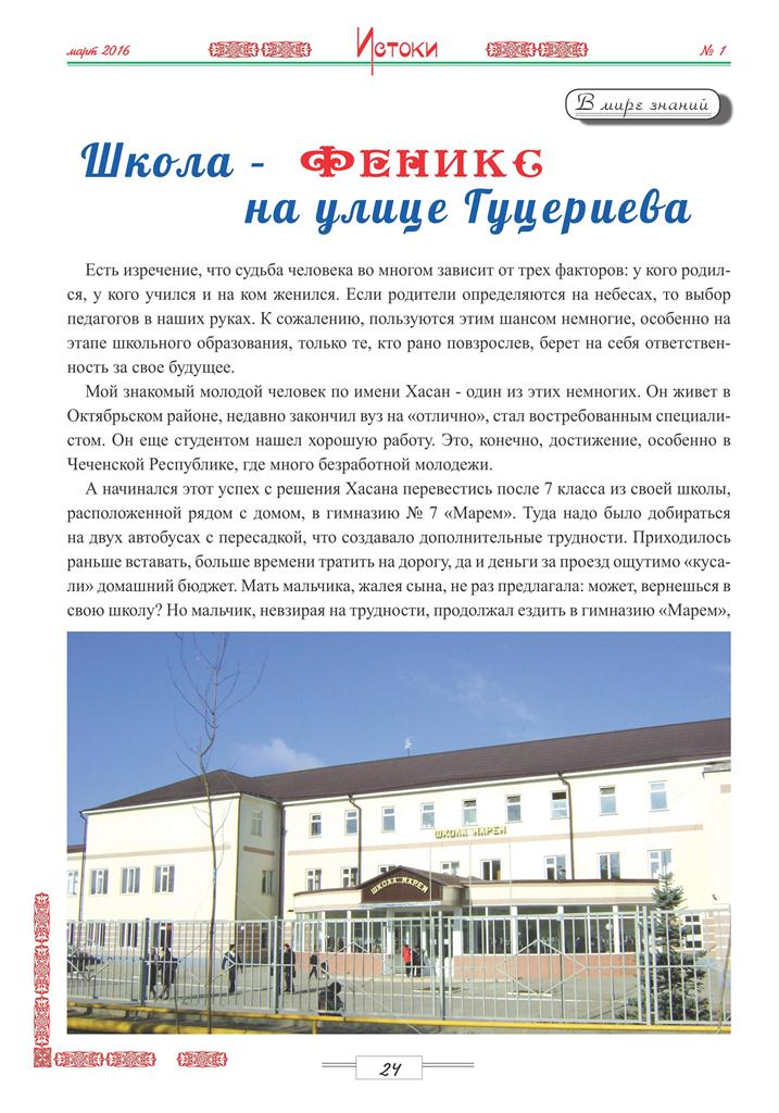 Детский познавательный журнал "Истоки" №1 2016г. опубликовал статью "Школа - ФЕНИКС на улице Гуцериева"