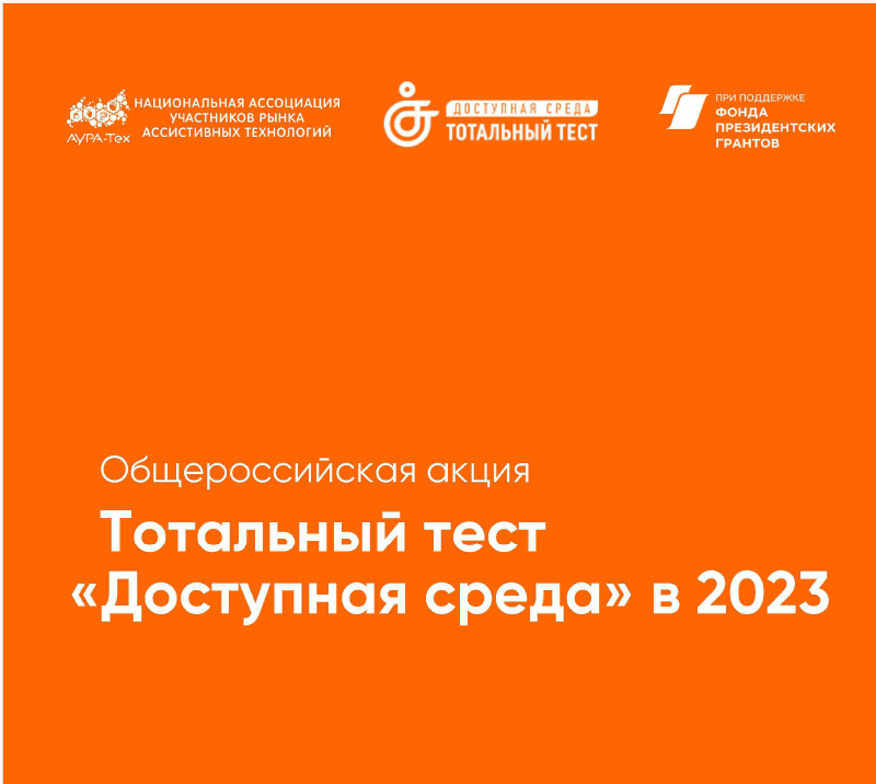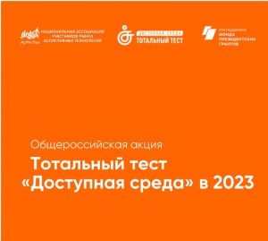 03.11.2023с 1 по 10 декабря 2023 г. Общероссийским народным фронтом и Национальной ассоциации участников рынкаассистивных технологий «АУРА-Тех» общероссийской акции Тотальный тест «Доступная среда», приуроченной к Международному дню инвалидов (далее - акция,мероприятие). Мероприятие направлено на привлечение внимания граждан к вопросаминклюзии и повышения качества жизни людей с инвалидностью, а также наповышение уровня знаний специалистов социально значимых сфер в вопросахвзаимодействия, этики общения и создания доступной среды.По итогам мероприятия будут сформированы рейтинги федеральныхи региональных органов исполнительной власти по уровню вовлеченности в вопросысоздания доступной среды, а также по уровню подготовки специалистов по вопросаминклюзии.