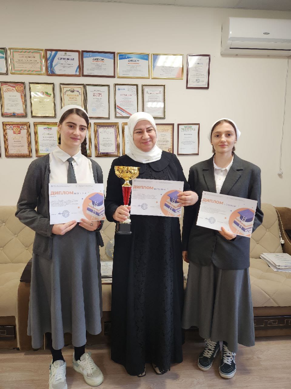 19.02.2024"В рамках реализации национального проекта "Образование", созданному по решению Президента России федерального проекта "Успех каждого ребенка" обучающиеся, команда "OVERSKILLS" из пяти участников (Асуев Алим, Мурадова Петимат, Писаева Аманта, Бисултанов Турпал, Абаев Умар) и команды болельщиков из 20 человек МБОУ "Гимназия № 7" г.Грозного, которые стали призерами, обладателями 2-места в республиканском конкурсе - школьной интеллектуальной лиги "Все сразу" среди 24-х школьных команд Чеченской Республики на звание лучших знатоков. Данный конкурс прошел в Республиканском комплексе общего и дополнительного образования "Квант", направленный на развитие интеллектуальных способностей у обучающихся и выявления одаренных школьников.