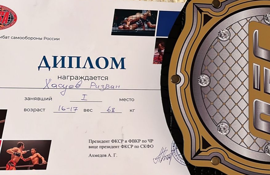 "В рамках реализации национального проекта "Образование", созданному по решению Президента России федерального проекта "Успех каждого ребенка" обучающийся 10-в класса, Хасуев Рамзан, спортсмен смешанных единоборств, пополнил свою личностную копилку еще одной победой, 1 место и обладатель пояса весовой категории 68 кг, возраст 16-17 лет.