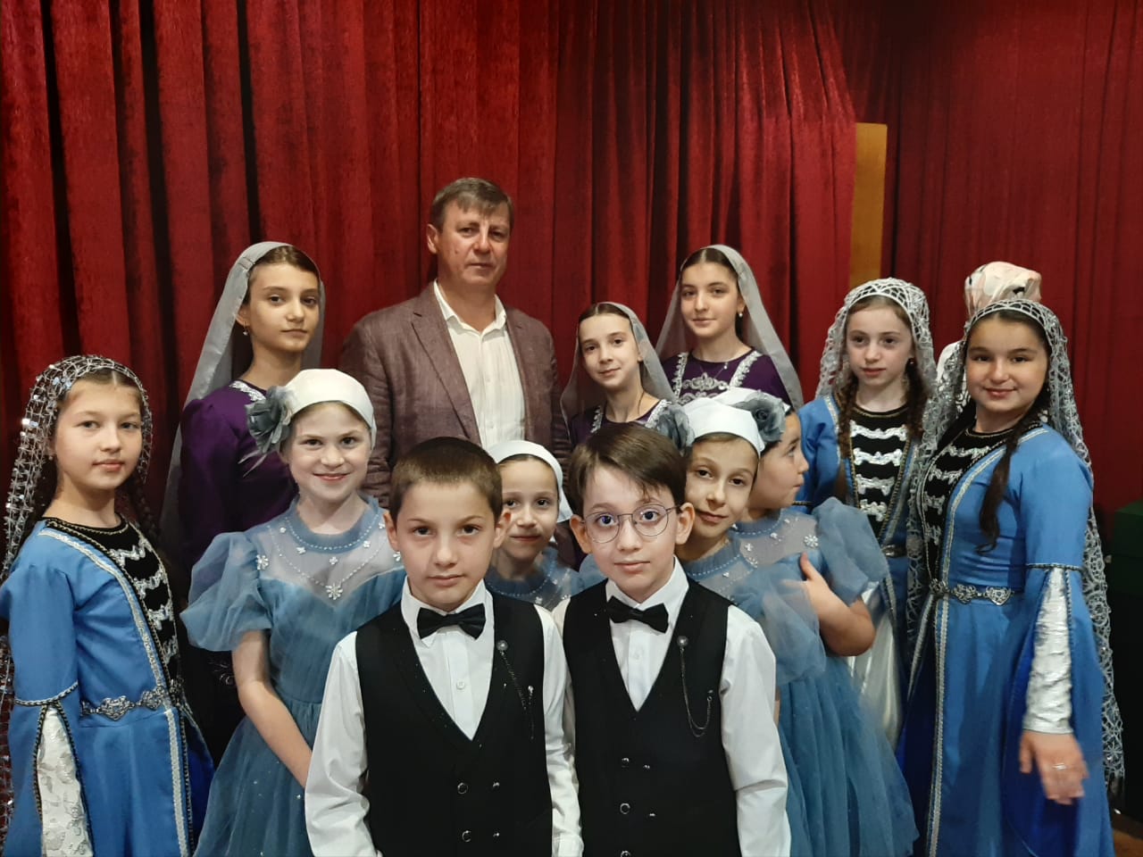 Детскому творческому коллективу МБОУ "Гимназия№7" выпала честь открывать торжественную часть праздника со стихами о родном крае "Даймохк и "с песней "Кавказ". Маленькие артисты подарили хорошее настроение, проявили яркий артистический талант и мастерство. Зрителям очень понравилось выступление детского коллектива, Они прочитали стихи поздравления и исполнили с большим вдохновением и задором вокально - хореографические композиции "Кавказ" и "Подари улыбку миру". Весь зал просто умилялся от выступления маленьких и ярких артистов.