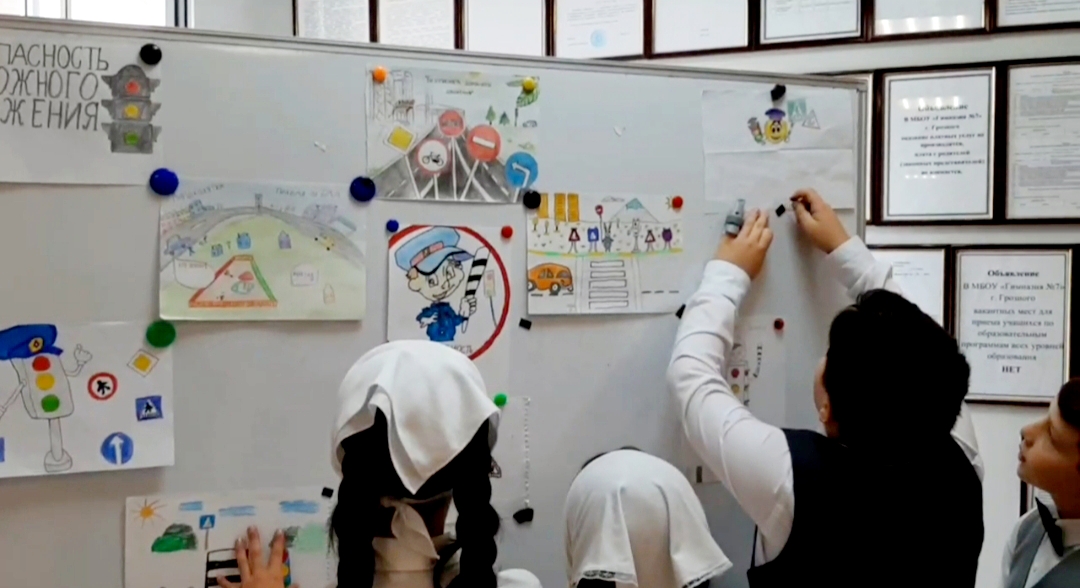 Юные художники МБОУ "Гимназия№7» г. Грозный провели выставку рисунков по ПДД «Азбука безопасности»