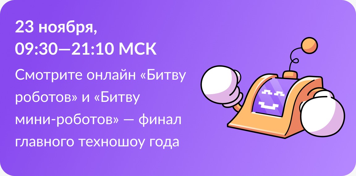 19.11.2024Минцифры России в соответствии с распоряжением Правительства Российской Федерации от 11 апреля 2023 г. № 889-р сообщает о проведении полуфинала и финала Международного чемпионата по битве роботов (далее - Чемпионат), который способствует продвижению инженерной мысли как драйвера развития и поддержки современных цифровых технологий