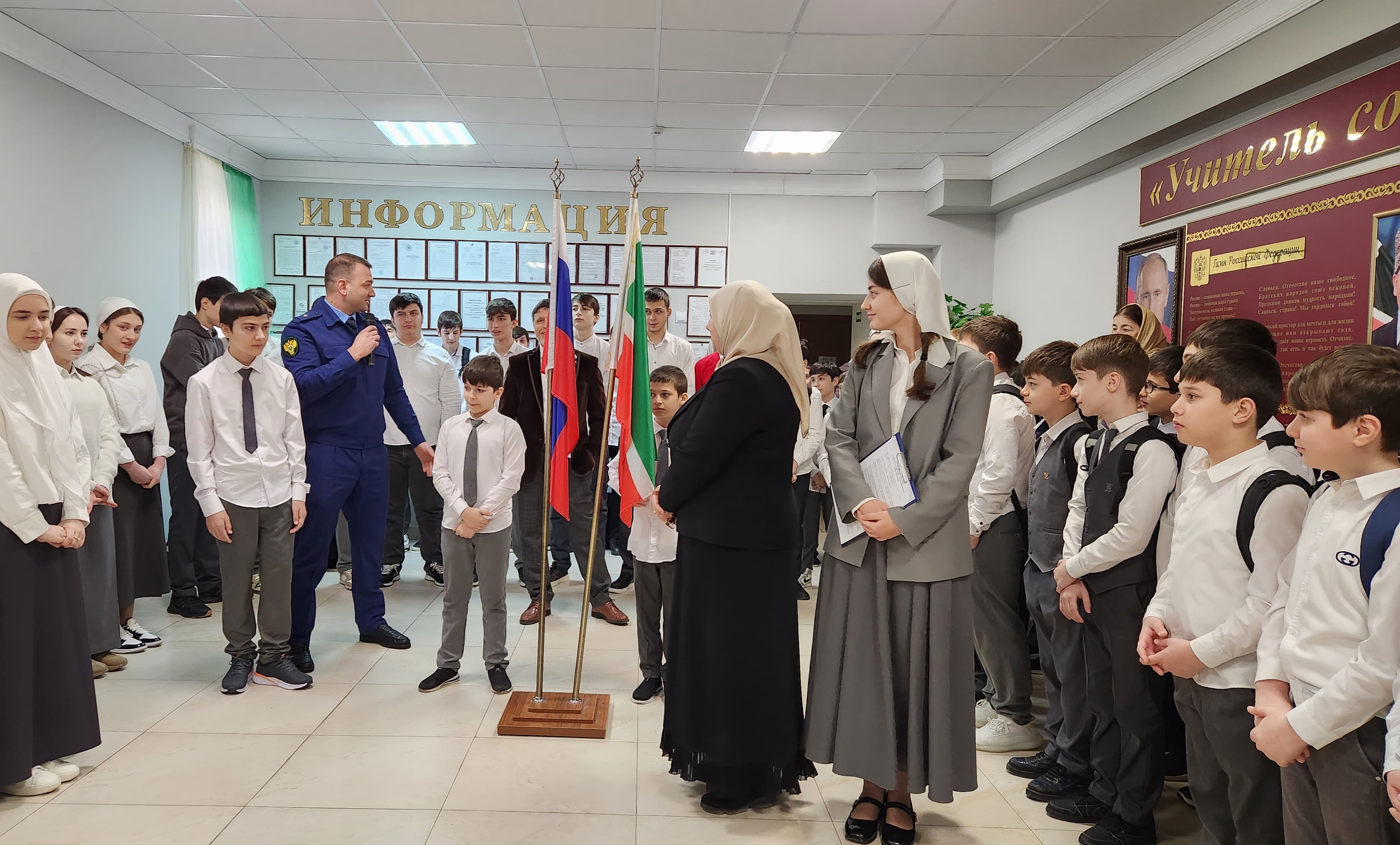 Сегодня МБОУ "Гимназия №7" посетили представители власти, депутат Парламента ЧР Талхигов Юсуп Сулейманович, старший помощник прокурора Шейх-Мансуровского района Чадаев А.Р.