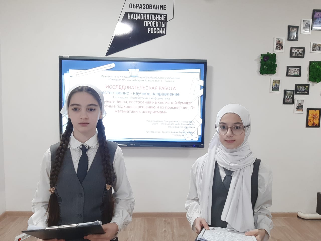25.03.2026Ученицы 6-б класса, Эльсанукаева Халима и Мурадова Амалия добились впечатляющих успехов во Всероссийском конкурсе исследовательских работ имени В.И. Вернадского. Их проект по математике на тему «Нестандартные методы решения со смешанными числами» прошёл региональный этап, успешно преодолел первый тур федерального уровня и вышел во второй тур, защита которого состоится в Москве.