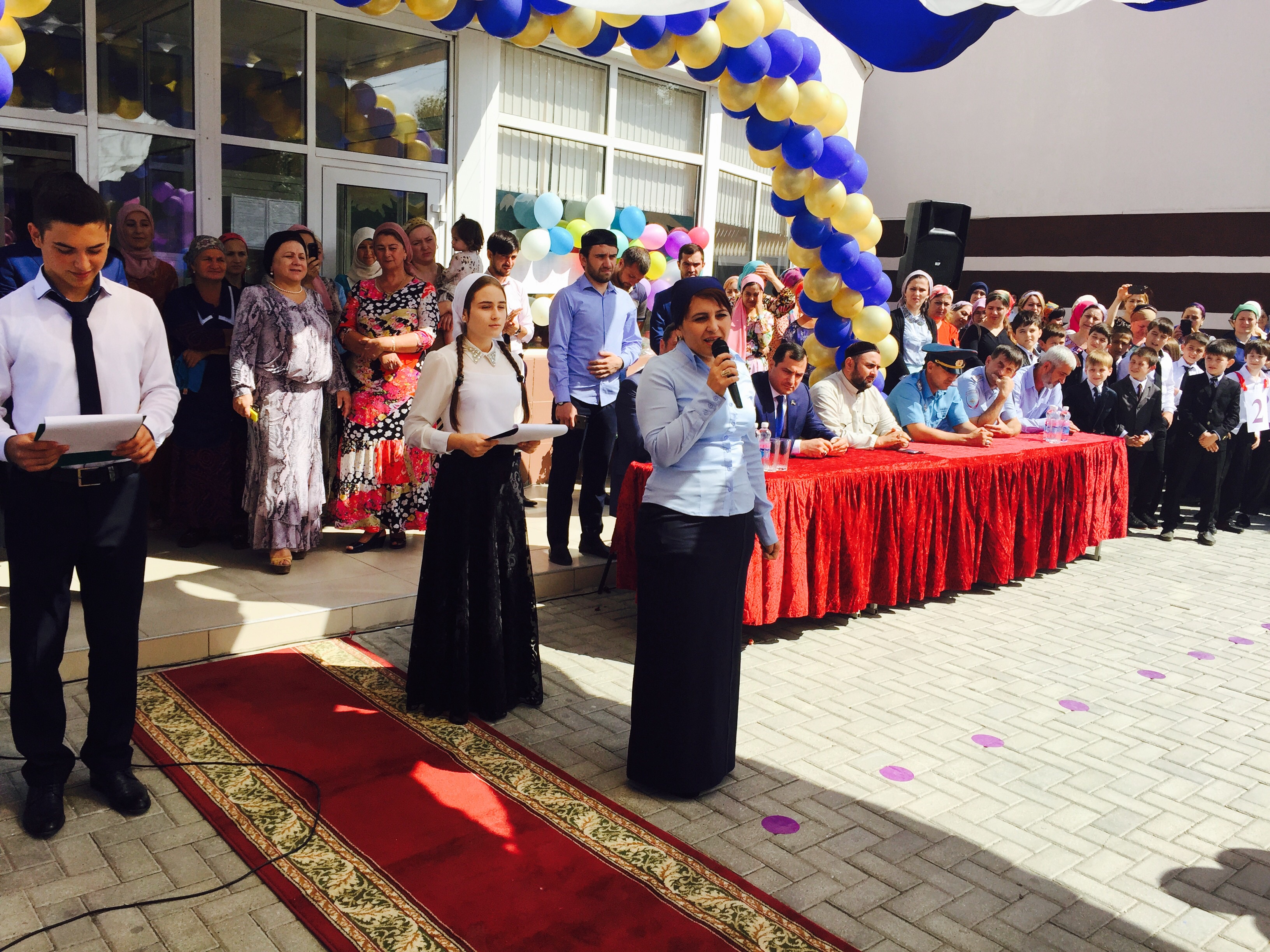 С приветственным словом выступила директор школы.Она же представила гостей, в числе которых был депутат парламента ЧР М.Алхазуров,глава г.Грозного А.Динаев и многие другие.